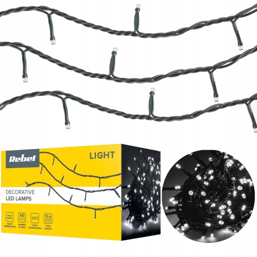 LAMPKI CHOINKOWE ŚWIĄTECZNE ZEWNĘTRZNE ZIMNE 10m