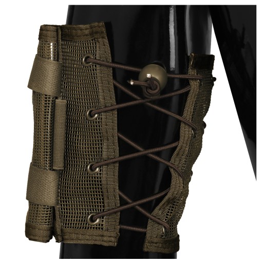 Wykonany został z siatki poliestrowej zapewniającej optymalną przepuszczalność powietrza, co zapobiega otarciom i nadmiernemu poceniu się ramienia. Oprócz przezroczystego winylowego okienka na mapę posiada również portfel na bilon zapinany zamkiem błyskawicznym oraz 2 uchwyty na długopisy.