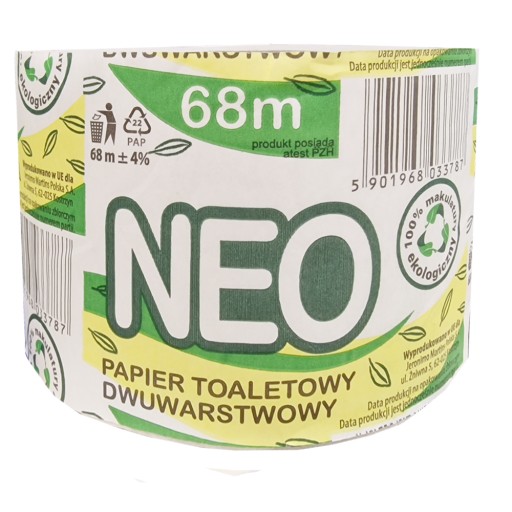 Mocny, dwuwarstwowy papier toaletowy bezzapachowy renomowanej marki NEO, gruba rolka 68m!