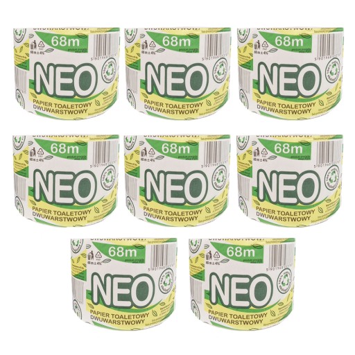 8x PAPIER TOALETOWY BEZZAPACHOWY NEO 68m ROLKA 2 WARSTWOWY