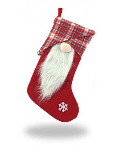 Duża skarpeta świąteczna na prezenty 3D - Świąteczny Gnom z dzwonkiem 44 cm