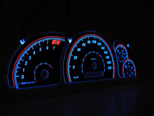 Nasze tarcze sprawią, że twoje auto będzie wyglądało jeszcze lepiej a licznik zyska nowe oblicze. W tarczach INDIGLO elementem świecącym jest sama folia INDIGLO o grubości zaledwie 0,5mm, która pobudzana jest wysokim napięciem z inwertera. Folia na całej swojej powierzchni równomiernie świeci (nie punktowo jak oświetlenie diodowe). Nie jest to podświetlanie diodowe z dołu lub z góry folii czy przepuszczającej światło pleksi, nie trzeba montować dodatkowych diod i żarówek. Przekonaj się o niesamowitej barwie plazmowego światła, super kontraście i niepowtarzalnych kolorach.