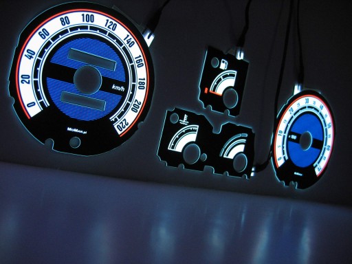 Nasze tarcze sprawią, że twoje auto będzie wyglądało jeszcze lepiej a licznik zyska nowe oblicze. W tarczach INDIGLO elementem świecącym jest sama folia INDIGLO o grubości zaledwie 0,5mm, która pobudzana jest wysokim napięciem z inwertera. Folia na całej swojej powierzchni równomiernie świeci (nie punktowo jak oświetlenie diodowe). Nie jest to podświetlanie diodowe z dołu lub z góry folii czy przepuszczającej światło pleksi, nie trzeba montować dodatkowych diod i żarówek. Przekonaj się o niesamowitej barwie plazmowego światła, super kontraście i niepowtarzalnych kolorach.