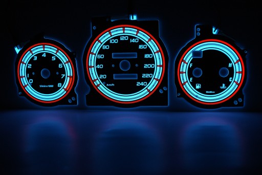 Nasze tarcze sprawią, że twoje auto będzie wyglądało jeszcze lepiej a licznik zyska nowe oblicze. W tarczach INDIGLO elementem świecącym jest sama folia INDIGLO o grubości zaledwie 0,5mm, która pobudzana jest wysokim napięciem z inwertera. Folia na całej swojej powierzchni równomiernie świeci (nie punktowo jak oświetlenie diodowe). Nie jest to podświetlanie diodowe z dołu lub z góry folii czy przepuszczającej światło pleksi, nie trzeba montować dodatkowych diod i żarówek. Przekonaj się o niesamowitej barwie plazmowego światła, super kontraście i niepowtarzalnych kolorach.