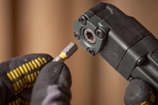 - Silny zintegrowany magnes zatrzymuje bity i śruby, zapobiegając upuszczeniu lub zgubieniu akcesoriów