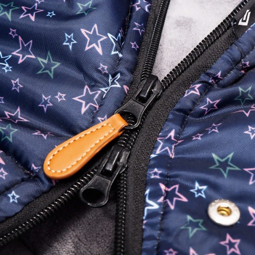 - Rodzaj zapinania: zamek błyskawiczny (2 zamki, rozpinane od góry i od dołu – jeden suwak na dole każdego zamka i jeden na górze)