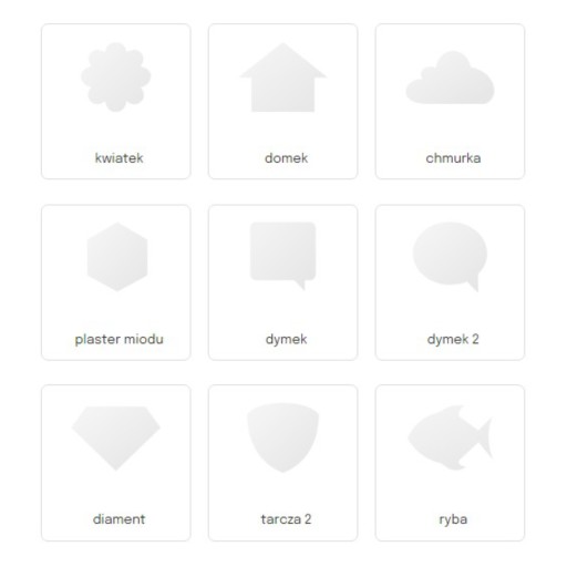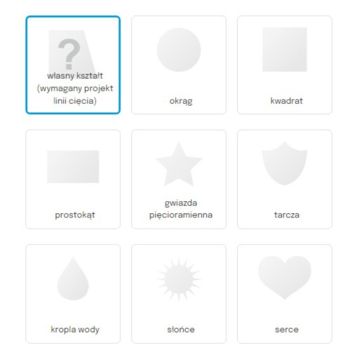 DOSTĘPNE KSZTAŁTY W KREATORZE ONLINE: