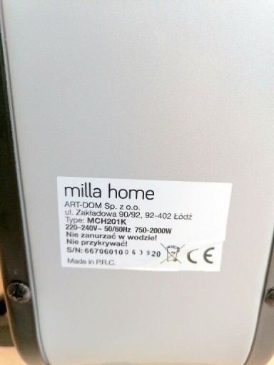 Sterowanie grzejnikiem możliwe jest za pomocą pokrętła oraz przycisków. Milla Home MCH201K posiada wyłącznik bezpieczeństwa. Grzejnik stoi na dwóch stabilnych podporach ma również wygodny uchwyt do przenoszenia.