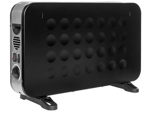 Grzejnik konwektorowy Milla Home MCH201K w czarnym kolorze z fakturowanym panelem, charakteryzuje się mocą 2000 W, podzieloną na dwa poziomy: 750 W lub 1250 W, z osobnymi włącznikami. Taka moc doskonale nadaje się do ogrzania pomieszczenia o wielkości ok. 20-25 m2. Użytkownik ma do wyboru trzy prędkości pracy.