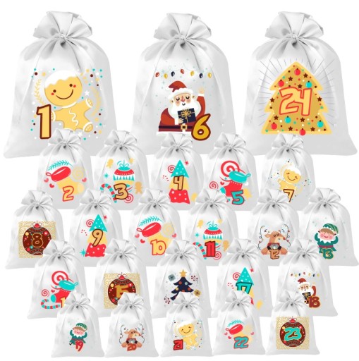 KALENDARZ ADWENTOWY SATYNOWE WORECZKI TO WSPANIAŁA ALTERNATYWA DLA NASZYCH POCIECH UMILAJĄCA CZAS OCZEKIWANIA NA ŚWIĘTA.W KAŻDYM WORECZKU MOŻNA UMIEŚCIĆ DROBNY UPOMINEK LUB SŁODYCZ.