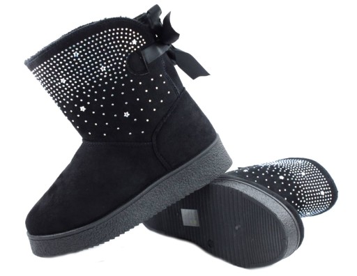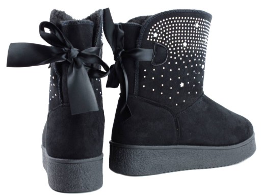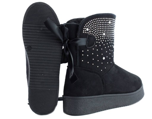 JB030 ЧЕРНЫЕ СНЕЖНЫЕ БОТИНКИ ЖЕНСКИЕ С ЛАНТОМ, размер 36