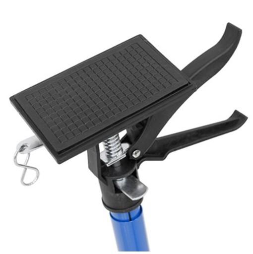 - Funkcja teleskopowa umożliwia regulację wysokości, a uchylne płyty dociskowe i dwa uchwyty zabezpieczające zapewniają stabilne zamocowanie