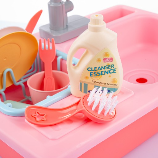 Zlewozmywak z prawdziwym kranem z lejącą się wodą i akcesoriami. Dziecko może pozmywać naczynia, zabawka rozwija wyobraźnię, uczy odpowiedzialności i dbania o porządek.