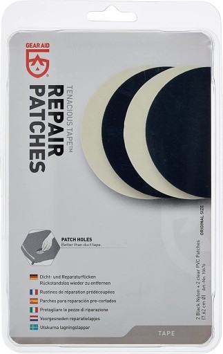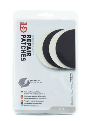 Gear Aid Repair Patches to mocne, odporne na warunki atmosferyczne łatki. Mogą być użyte do niemal każdej powierzchni zapewniając trwałość i elastyczność naprawionego miejsca. Łatwe w użyciu, zapewniają szybką, długotrwałą naprawę tkanin syntetycznych i naturalnych. Nadają się do sztormiaków, kurtek membranowych, polarów, winylu, gumy i tworzyw sztucznych. Idealne do namiotów, sprzętu przeciwdeszczowego, plecaków, śpiworów, mat i poduszek, foteli, markiz itp.