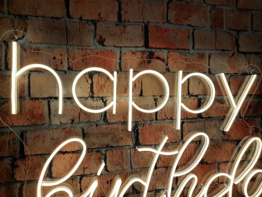 Przedmiotem sprzedaży jest podświetlony neon HAPPY BIRTHDAY, kolor ciepły biały.