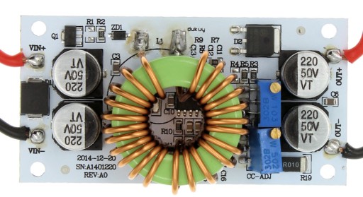 Moduł/Przetwornica DC-DC prądu stałego, podwyższająca napięcie do rzędu 10-50VDC z płynną regulacja napięcia oraz prądu. Maksymalna wydajność prądu może osiągnąć 10A. Dzięki aluminiowej płytce przetwornica doskonale odprowadza ciepło. Przetwornica pracuje impulsowo, dzięki czemu możliwe jest osiągnięcie dużej wydajności przy małych stratach.