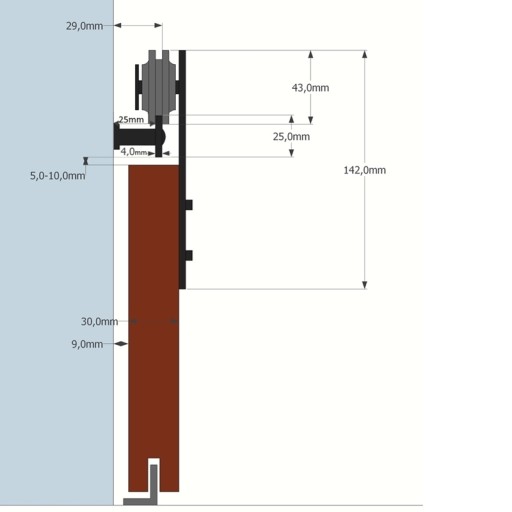 - prowadnica dedykowana do lekkich meblowych drzwi przesuwnych