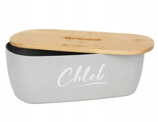 Stylowy i nowoczesny chlebak z deską bambusową do krojenia.