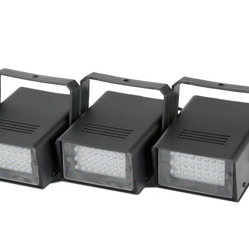 to ciekawa propozycja do średniej wielkości pomieszczeń i sal. Każdy ze stroboskopów został wyposażony w 24x 5 mm diody LED. Każdy też świeci w innym kolorze: czerwonym, niebieskim, białym i żółtym. Stroboskopy są bardzo proste w podłączeniu, mają automatyczny program z regulacją szybkości błysków. Efekt jak na takie nieduże urządzenia jest naprawdę bardzo fajny, rzuca się w oczy i wprowadza mocno imprezowy klimat. Każde z urządzeń może być też używane oddzielnie.