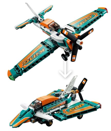 - Zestaw LEGO® Technic 42117 Samolot wyścigowy to doskonały prezent dla młodych kadetów. Dzięki żywym kolorom, naklejkom sponsorów i obrotowemu skrzydłu model wygląda jak prawdziwy.