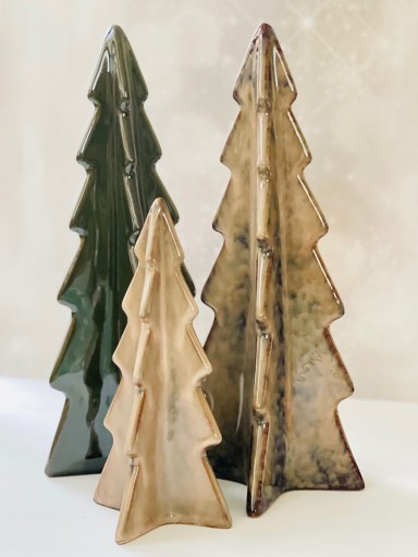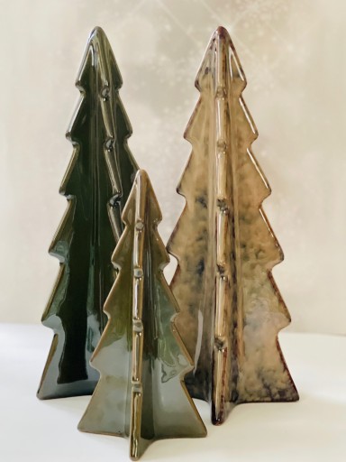 Eleganckie ceramiczne figurki to przepiękna dekoracja. Świętnie będą się prezentowały jak ustawisz kilka takich choinek różnej wielkości i w różnych kolorach. Ustawiając je np. na lustrzanej tacy w towarzystwie świecy stworzysz magiczną świąteczną dekorację.