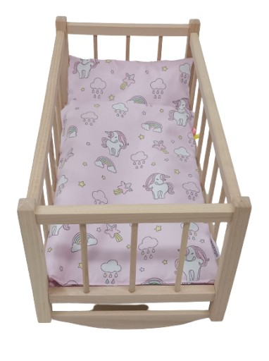 - DREWNIANA KOŁYSKA Z KOMPLETEM POŚCIELI (3 elementy)