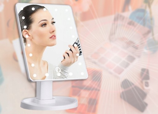 Doskonałe lusterko kosmetyczne z powiększeniem. Wyposażone w aż 16 diod doświetlających LED po zewnętrznej stronie. Diody LED są uruchamiane dotykowo - wystarczy kliknąć w dowolnym miejscu lusterka aby je aktywować i rozświetlić sobie przestrzeń roboczą np. w trakcie wykonywania makijażu.