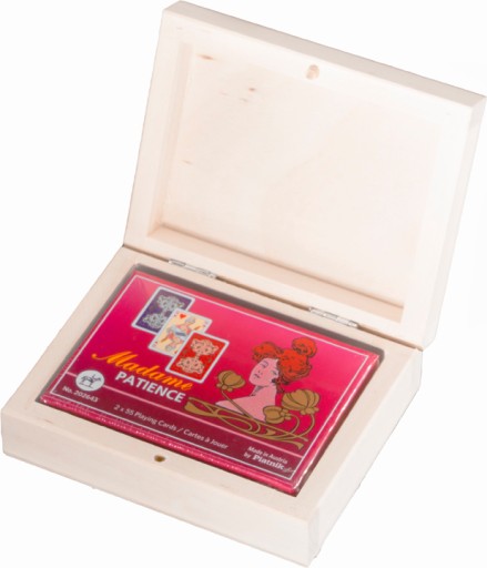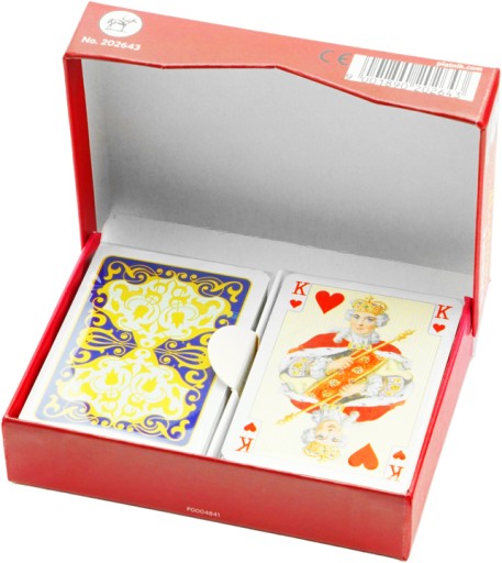Najwyższej jakości karty do pasjansa renomowanej firmy Ferd. Piatnik & Sohne. Eleganckie pudełeczko kryje 2 niewielkie talie. Na rewersach (koszulkach) zdobiony ornament. Mniejszy format sprawia, że łatwiej układa się pasjansa. Talie składają się z 55 plastikowanych kart o wymiarach 44 x 66 mm i gramaturze 310.
