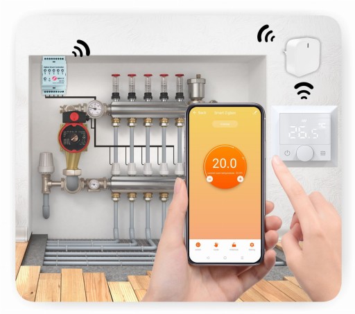 Inteligentny sterownik ogrzewania podłogowego Zigbee umożliwia sterowanie pracą systemu ogrzewania podłogowego. Dzięki bezprzewodowej współpracy z termostatami pokojowymi Zigbee usytuowanymi w poszczególnych pomieszczeniach, sterownik Zigbee pozwala na oddzielne regulowanie każdej z pętli grzewczych. Praca całego systemu nadzorowana jest przez bramkę Zigbee, a kontrolować można ją w prosty sposób za pomocą aplikacji na telefon. Oferowane rozwiązanie podnosi komfort użytkowania systemu ogrzewania podłogowego oraz pozwala obniżyć koszty ogrzewania domu czy mieszkania.