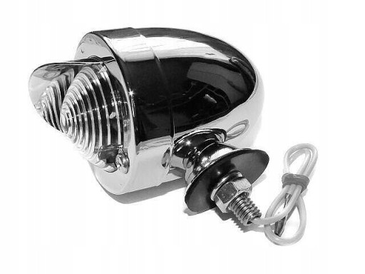 Wyposażony w biały klosz oraz pomarańczową żarówkę 12V 10W.