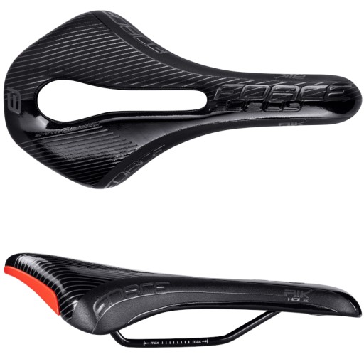 FORCE RIK HOLE+ to siodełko o bardziej zaokrąglonym kształcie i średnio miękkiej warstwie wyściółki z podłużnym otworem w celu zmniejszenia nacisku we wrażliwych punktach ciała, zapewniające komfort jazdy przez długi czas.