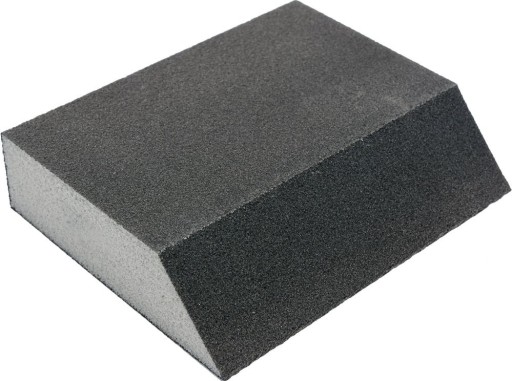 Kostka do szlifowania wykończeniowego, m.in. obróbki powłok lakierniczych, tworzyw sztucznych, drewna, szpachli. Nasyp ziarna elektrokorundu o granulacji P220 na czterech bokach kostki. Przydatne narzędzie w pracach wykończeniowych.