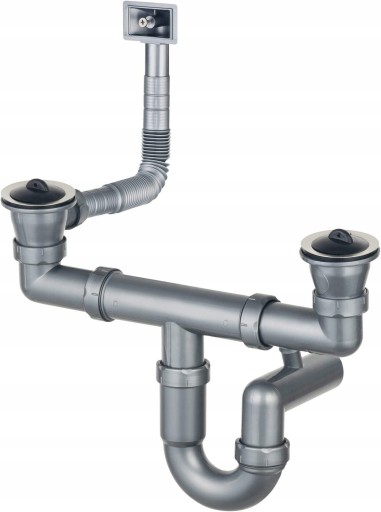 Syfon przeznaczony jest do zlewozmywaków stalowych 2-komorowych. Model ten posiada korek manualny oraz prostokątny przelew.