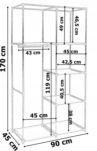 Szafka została stworzona ze stabilnych stalowych ramek, oraz oddychającego dobrej jakości materiału.