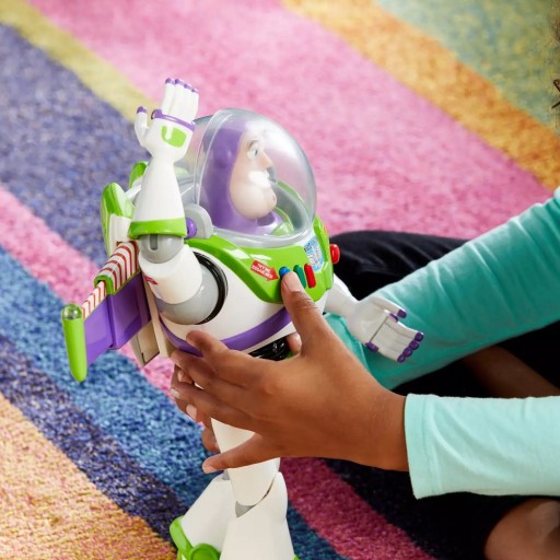 Buzz ma wysokość około 30 cm i wypowiada ponad 10 zwrotów oryginalnym głosem w języku angielskim.
