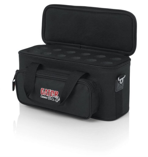 Gator GM-12B - Torba na 12 standardowych mikrofonów wokalnych oraz instrumentalnych z przegrodą na akcesoria