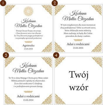 3. Dla kogo jest podziękowanie np. Kochana Matko Chrzestna, Kochany Ojcze Chrzestny, Kochana Babciu, Kochany Dziadku, Kochany Wujku.. itd...