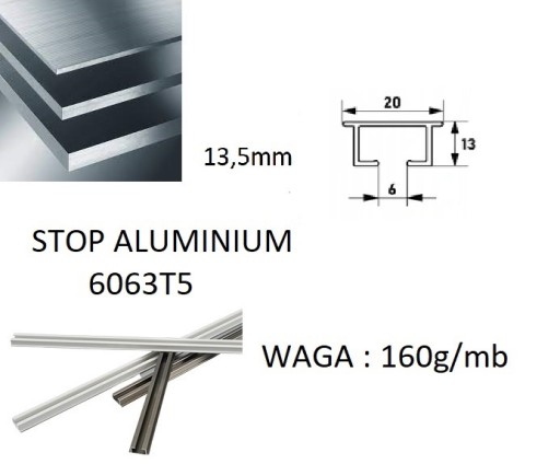 Profil z aluminium lakierowanego na biało (opatentowana farba samosmarująca): szerokość 20 mm x wysokość 13 mm.