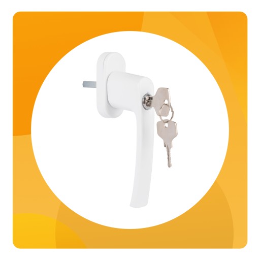 ОКОННАЯ РУЧКА С КЛЮЧОМ И ЗАМКОМ ДЛЯ ОКОН, БЕЛАЯ, 100% АЛЮМИНИЙ, МАССОВАЯ