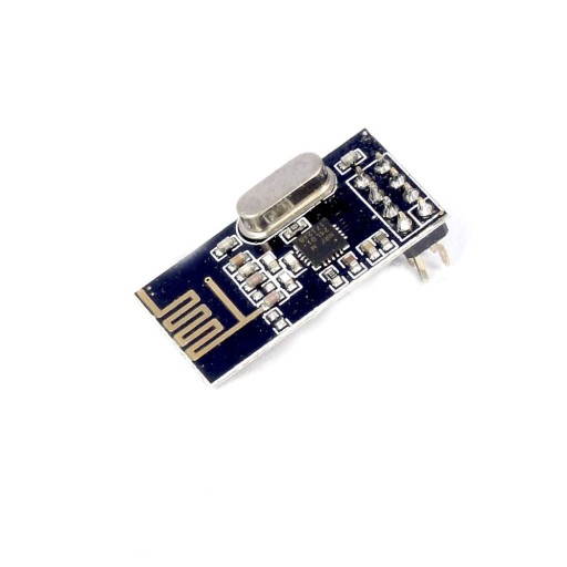 Moduł radiowy (nadajnik / odbiornik) działający w paśmie 2,4 GHz. Interfejs komunikacyjny SPI. Moduł wyposażony w złącza goldpin i antenę zintegrowaną na PCB. Zasięg do 100 metrów.