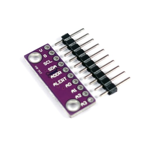 Moduł przetwornika analogowo cyfrowego 4-kanałowego o rozdzielczości 16 bit. Pobiera 860 próbek na sekundę. Zasilany układu napięciem od 2v do 5.5V. Komunikacja następuję poprzez magistralę I2C. Możliwość wzmocnienia programowego do 16x.