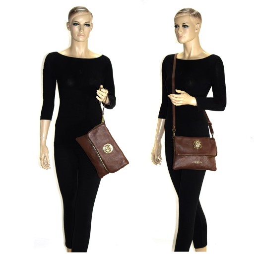 Bardzo funkcjonalna miękka listonoszka ozdobiona głową lwa.