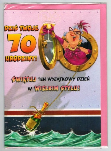 KARTKA URODZINOWA Z OKAZJI 70-TKI DLA KOBIETY Z POCZUCIEM HUMORU