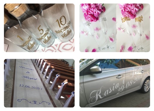 Jeżeli chcesz napisy na kieliszki, podaj maksymalną długość napisu, teksty i czy będą klejone w pionie czy w poziomie.