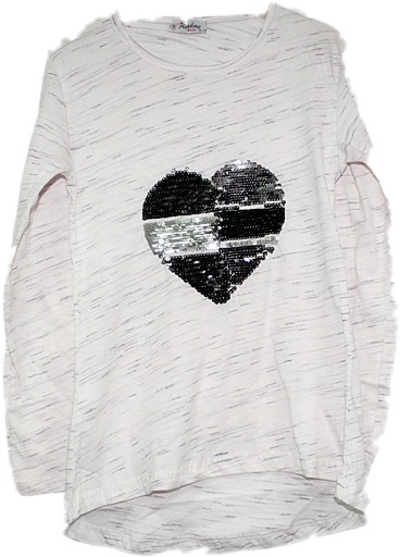 Na przodzie aplikacja SERCA z przerwami pokryta magicznymi dwustronnymi cekinami zmieniającymi kolor po wygładzeniu dłonią. Czarno-srebrne serce zmienia się na odwrotne.