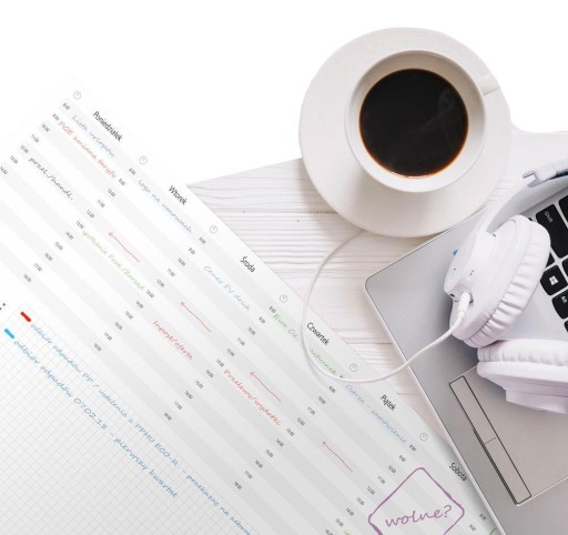 - na górze terminarz tygodniowy z miejscem na notatki (podział godzinowy),
