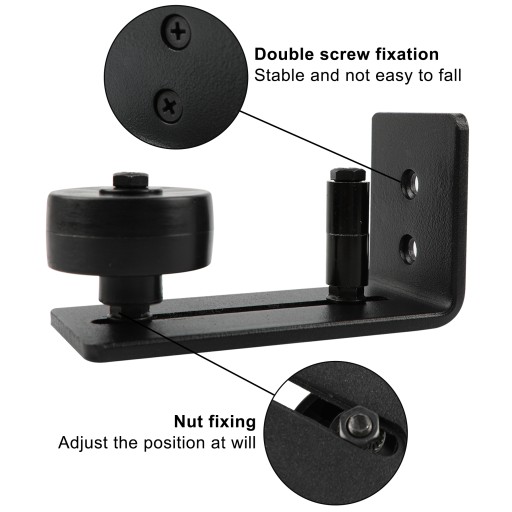 Gładkie łożysko może łatwo się przesuwać, a następnie bez trudu przesuwać drzwi. Spód prowadnicy podłogowej jest płaski i nie uszkodzi drzwi ani podłogi Przesuwaj się płynnie i cicho.