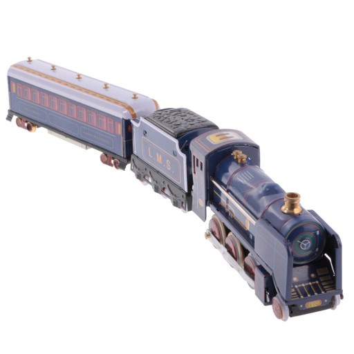 Vintage Train Model Mechaniczna Cyny Kolekcjonerski Niebieski