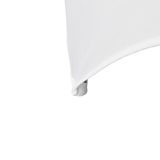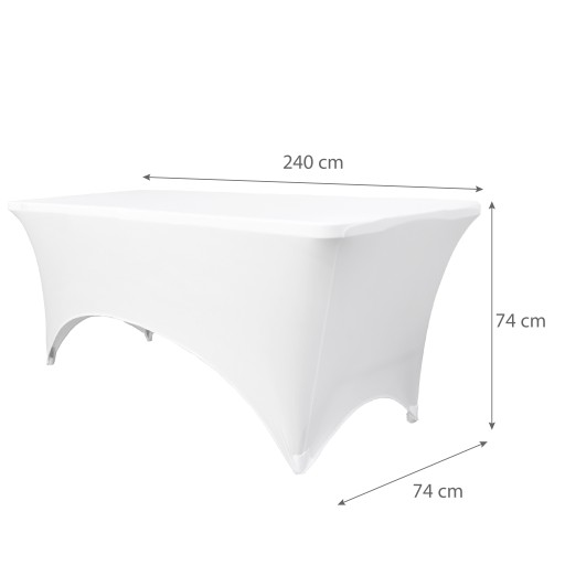Elastyczny materiał doskonale dolega do stołów o rozmiarach 240cm x 74cm (standardowe wymiary stołów bankietowych), dzięki czemu obrus jest bardzo dobrze naciągnięty na powierzchni blatu.