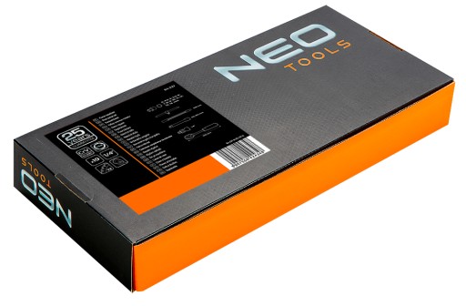 Zestaw kluczy nasadowych 1/4" NEO (nr ref. 84-237) składa się z 19 elementów wykonanych z wysokiej jakości stali chromowo-wanadowej. W skład zestawu wchodzą grzechotka, wyposażona w trwały mechanizm zapadkowy (72 zębów). Zestaw zawiera bogaty pakiet nasadek sześciokątnych (w rozmiarach od 4 do 14 mm). Uzupełnieniem są poręczne przedłużki (w tym przedłużka elastyczna), pokrętło przelotowe i przegub. Całość dostarczona jest w wytłoczce dopasowanej wymiarami do szuflad szafek narzędziowych NEO 84-221 i 84-222. Marka NEO spełnia oczekiwania profesjonalistów.